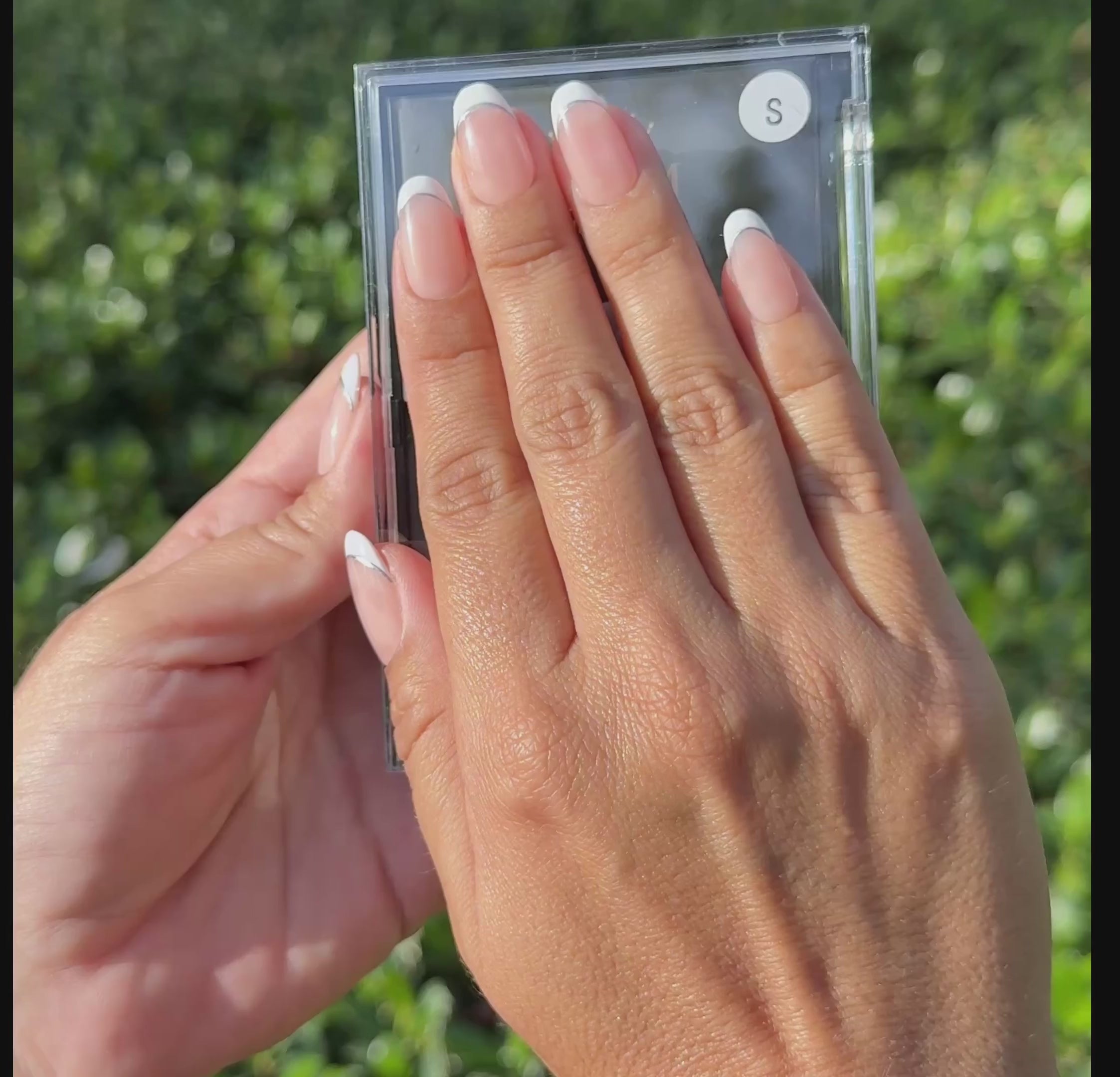 KLAM Studio Nails Moonlight French Nude, Handmade Acrylic Press-On Nails, Reverse French Style, Oval Short Length, Reusable, Salon-Quality Finish in Minutes