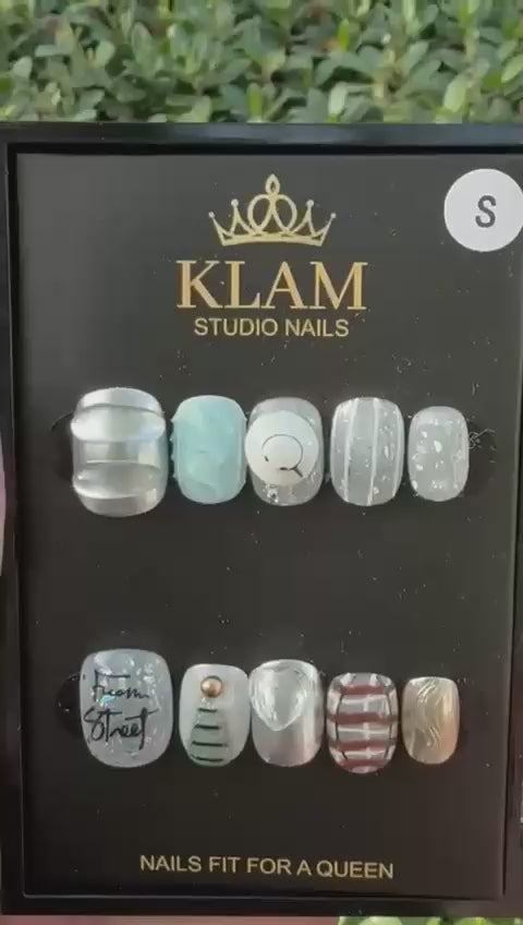 KLAM Studio Nails Winter Story Square, Handmade Acrylic Press-On Nails, Short Square, 3D Snowman and Chrome Accents, Silver Foil and Knit Details, Reusable, Salon-Quality Finish in Minutes