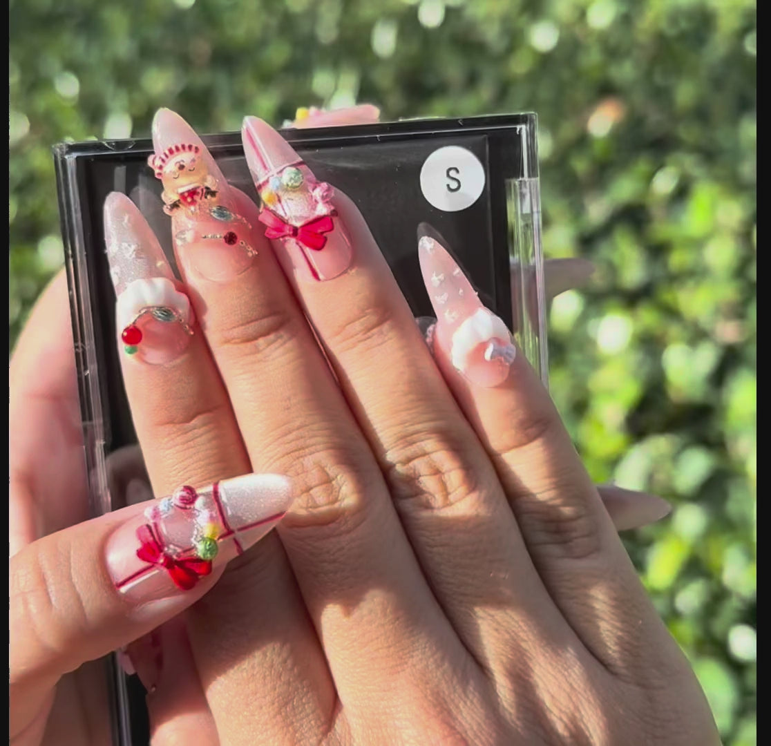 KLAM Studio Nails Noël Charm, Handmade Acrylic Press-On Nails, Almond Long Length, 3D Christmas Accents, Rose-Gold , Reusable, Salon-Quality Finish in Minute